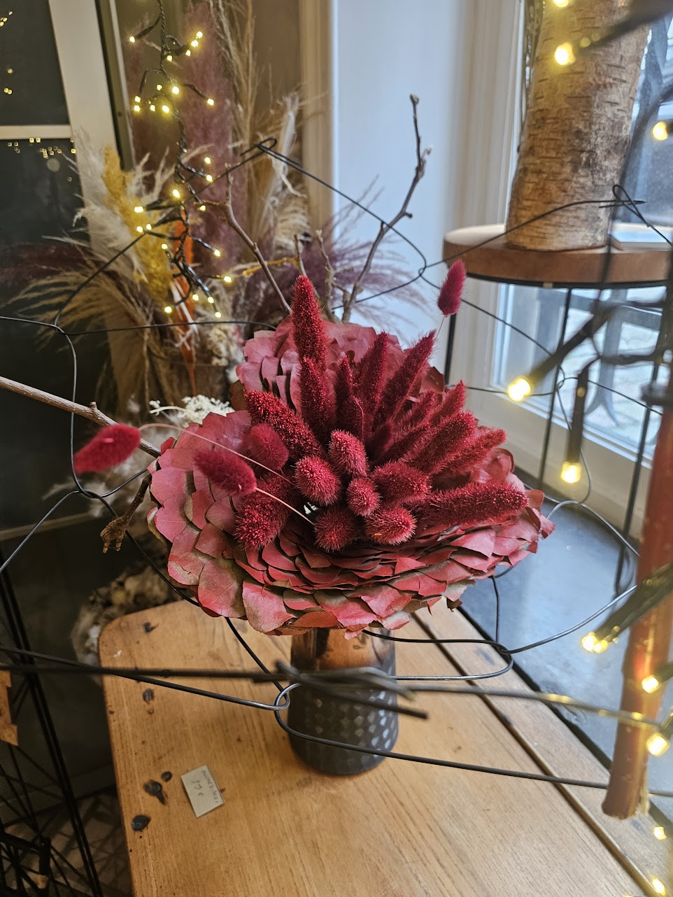 Le samedi 13/12 nous vous apprendrons à faire une belle suspension de fêtes et le dim 14/12 ce sera sur la couronne de noël, avec des éléments secs et durables. 2 thèmes immanquables!